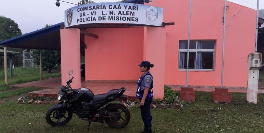 CAÁ YARÍ. En la noche del martes efectivos de la Comisaría local realizaban recorridas nocturnas por las chacras, cuando hallaron abandonada al margen de un camino vecinal una motocicleta Yamaha FZ 153 cc., la cual habría sido abandonada debido al movimiento Policial en la zona.
