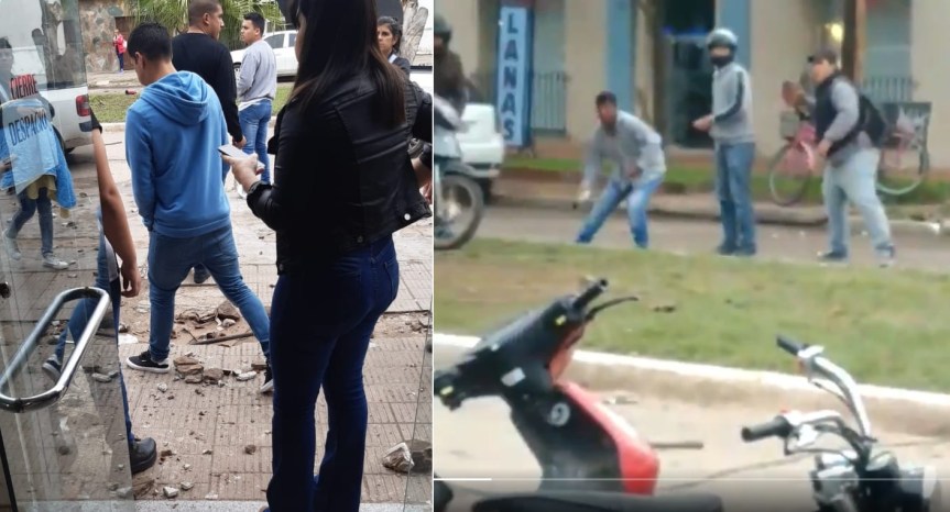 Asimismo, otro grupo de personas continuaron con las agresiones y arrojaron piedras, palos y otros objetos contundentes hacía de Desarrollo Social, dañando el edificio y autos particulares que estaban estacionados.