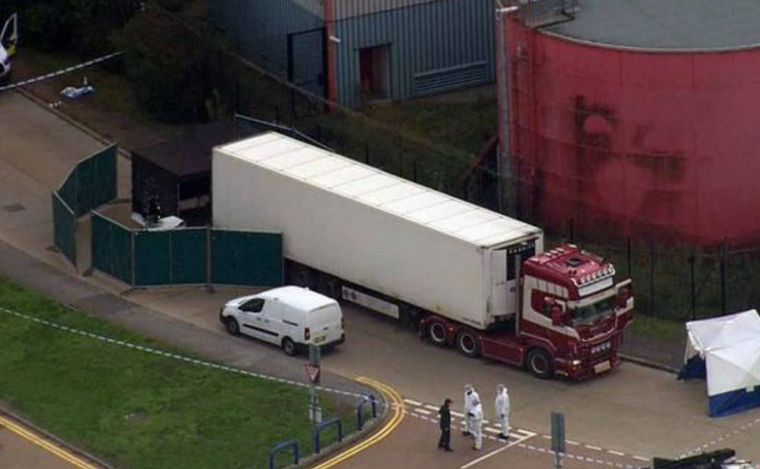 La Policía británica halló este miércoles los cadáveres de 39 personas que se encontraban en el contenedor de un camión en una zona industrial del condado inglés de Essex y detuvo al conductor como sospechoso de asesinato.