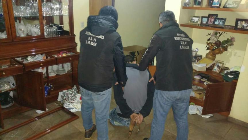 ALEM. Efectivos de la División Investigaciones UR VI detuvieron esta madrugada, en una vivienda del barrio Virgen del Rosario a Catriel O. de 23 años por robar objetos y cometer nuevamente otro ilícito en el lugar.