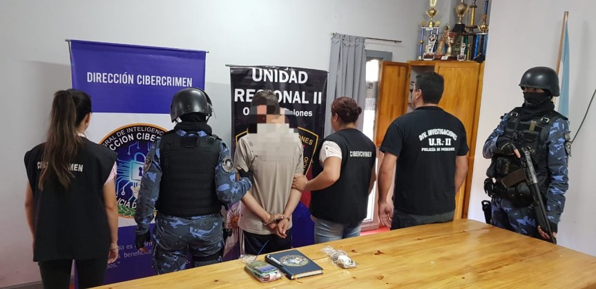 Dirección de Cibercrimen de Posadas, para dar el día de hoy, con el joven de 24 años, quien fue localizado y detenido tras un allanamiento dispuesto por el Juez de Instrucción Nº2 de Oberá el Dr. Horacio Heriberto Alarcón.