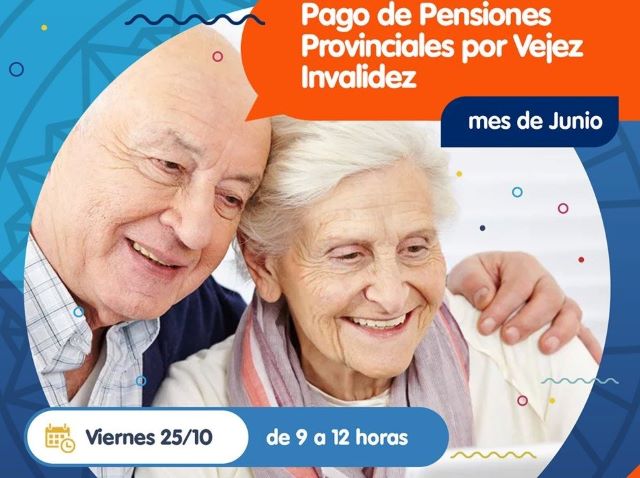 OBERÁ. Se está pagando las pensiones por vejez e invalidez correspondiente al mes de Junio. Se solicita a los beneficiarios acercarse a percibir la pensión, de lunes a viernes de 7 a 12hs en las oficinas del Departamento de Adultos Mayores, ubicado por calle Buenos Aires 59.