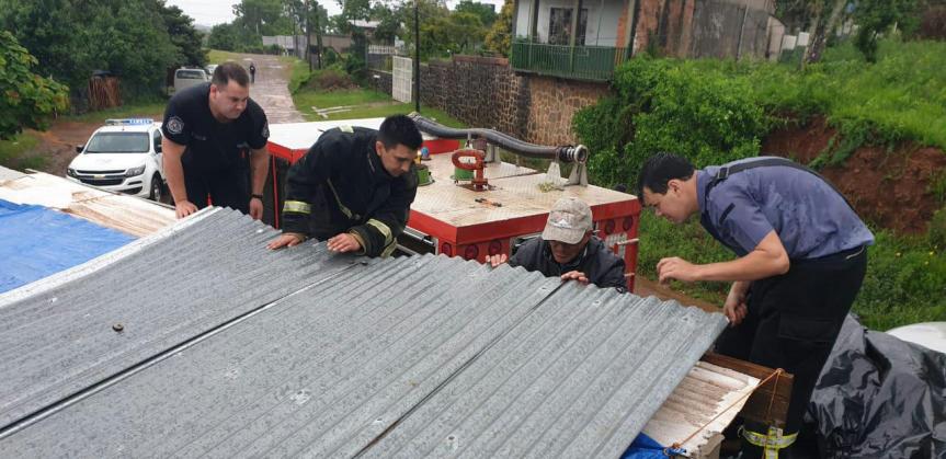 La Policía implementó un despliegue de seguridad con personal de las Unidades Regionales de Eldorado, Iguazú, Bernardo de Irigoyen y San Vicente, donde se reflejó más daños por las inclemencias del tiempo. Los efectivos realizaron trabajos conjuntos, con personal de los municipios, asistiendo a un total de 7 familias de las distintas jurisdicciones.