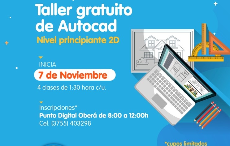 OBERÁ. Mañana a las 18.30 en el edificio de la Casa de la Historia y Cultura del Bicentenario ubicado sobre calle Larrea y José Ingenieros, en aula de capacitación del «Punto Digital Oberá», se dictará un taller sobre Autocad, un Programa de dibujo asistido por computadora, nivel principiante 2D.