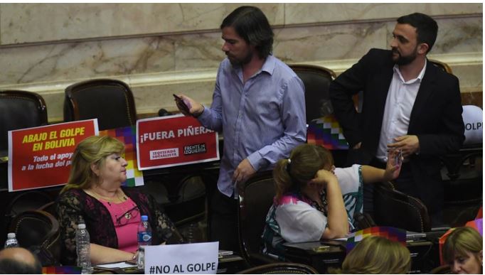 Al momento de los cierres, el titular de la bancada del Frente para la Victoria en Diputados, Agustín Rossi, expresó: «No encontré ningún discurso tanto del oficialismo, ni de la oposición que no rechazara el golpe de Estado en Bolivia. Más allá de que por otras circunstancias la votación final no salga por unanimidad, que esto quede asentado en la versión taquigráfica».