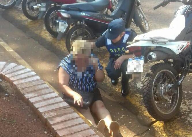 OBERÁ. Esta mañana, efectivos de la División Prevención de Delitos, se encontraban realizando patrullajes de prevención por el centro Cívico de esta ciudad, donde observaron que una mujer, al transponer la avenida Libertad, se cayó sobre la vereda de la Plaza Güemes.