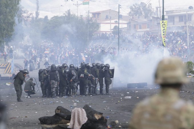 COCHABAMBA. Violentos enfrentamientos en el puente Huayllani, Sacaba, dejaron al menos cinco muertos, según un reporte de la emisora cocalera Kawsachun Coca. Los policías y militares impidieron que los cocaleros avancen y lleguen a la ciudad, como tenían planificado en defensa del expresidente Evo Morales.