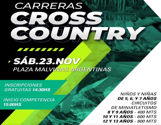 OBERÁ. Este sábado 23, la plaza Malvinas Argentinas será el escenario de Carreras de Cross Country para niños de 5 a 13 años. Las inscripciones serán gratuitas a partir de las 14.30, media hora más tarde comenzarán las competencias.