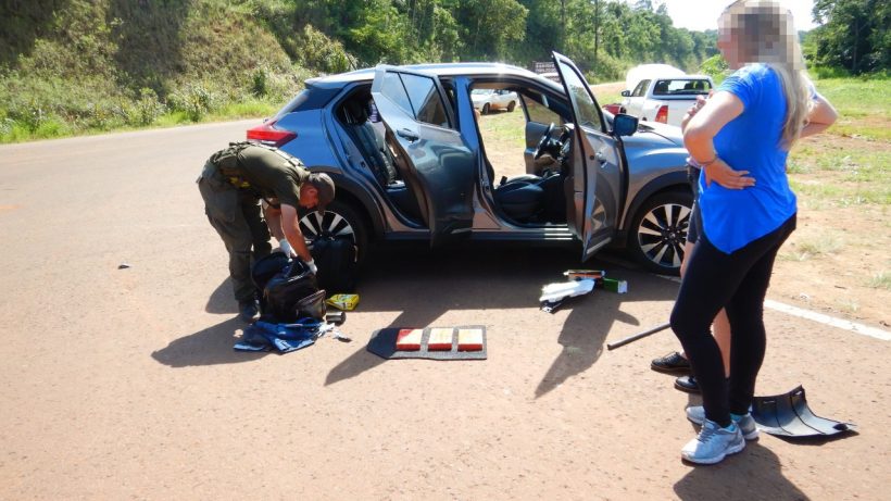 PIÑALITO. Gendarmería decomisó 6 kilos 218 gramos de cocaína transportados ocultos en un automóvil. Este procedimiento se desarrolló en la mañana del martes, cuando efectivos de la Sección “San Antonio” dependiente del Escuadrón 12 “Bernardo de Irigoyen”, controlaban un automóvil Nissan Kicks sobre el kilómetro 63 de la Ruta Nacional Nº 101, observaron como el conductor del mismo acelera de forma brusca y se da a la fuga para evitar la inspección.