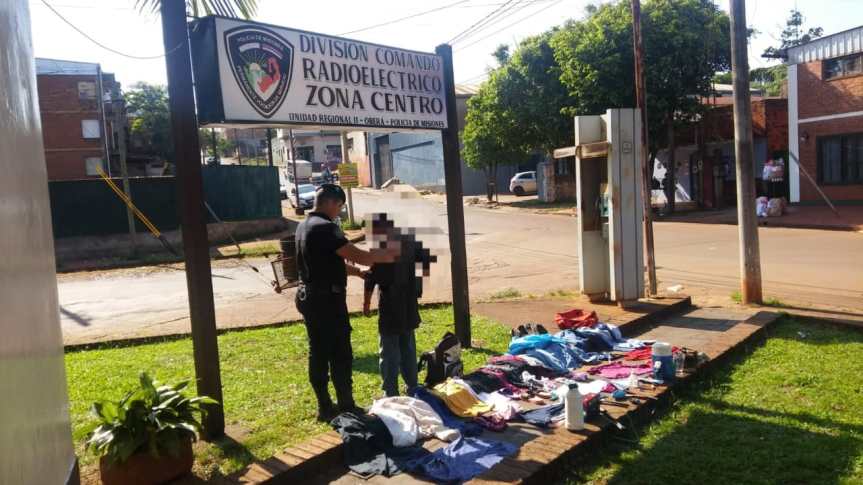 OBERÁ. Esta mañana, efectivos del Comando Radioeléctrico Centro, detuvieron a Leonardo G. de 40 años y recuperaron varios objetos como ser prendas de vestir, elementos de higiene, una radio, un termolar, vasos y un triciclo, entre otros. Todos estos fueron sustraídos en perjuicio de Francisco M. de 56.