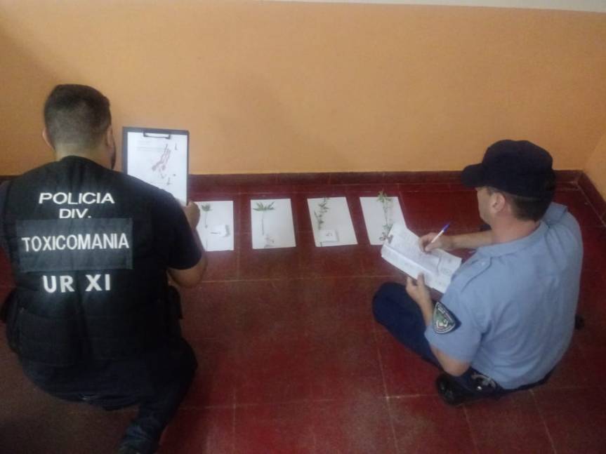 Allí, los policías hallaron un total de cuatro plantas de similares características a la marihuana. Por tal motivo, se solicitó la presencia de personal de la División Toxicomanía UR XI, quienes corroboraron dicha sustancia, cuyas plantas medían entre 41 y 58 cm, con peso de 21 gramos y un valor aproximado a los 1.344 pesos.