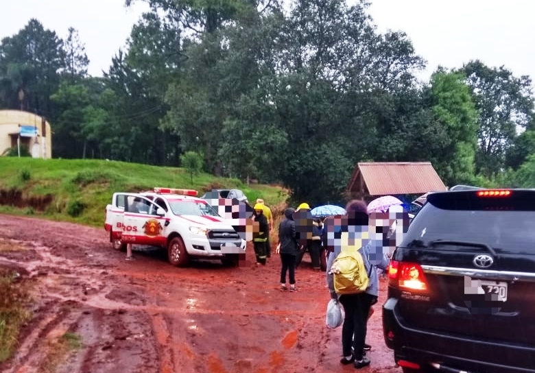 La Policía tomó conocimiento sobre la situación y de manera inmediata se constituyeron al Kilómetro 18 y con los móviles policiales, procedieron a sacar a todas las personas del lugar.