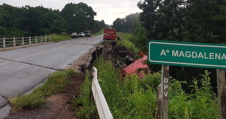 Según las primeras averiguaciones, Sebastián K. de 32 años circulaba por la ruta con un camión Mercedes Benz y, por causas que se tratan de establecer, despistó sobre el puente del mencionado arroyo, quedando el rodado entre malezas.