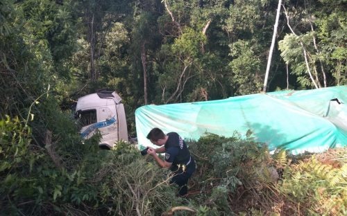 Un camión cayó a un barranco esta mañana en la localidad de Bernardo de Irigoyen. El conductor fue llevado al hospital con lesiones.