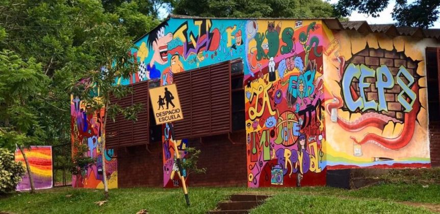 OBERÁ. El 30 de noviembre se comenzó a pintar el mural en el Centro Educativo Polimodal N°8 del Barrio Docente y Yerbal Viejo.
