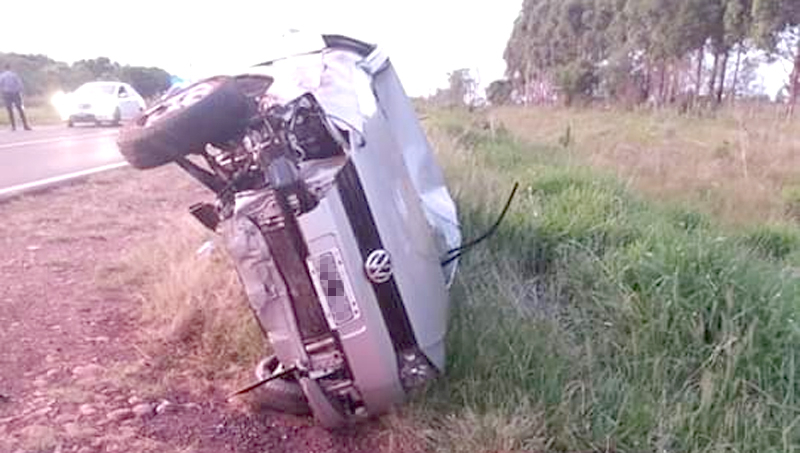 Como consecuencia de esto, el automóvil se desestabilizó y salió de la calzada hasta que volcó al costado de la vía de tránsito.