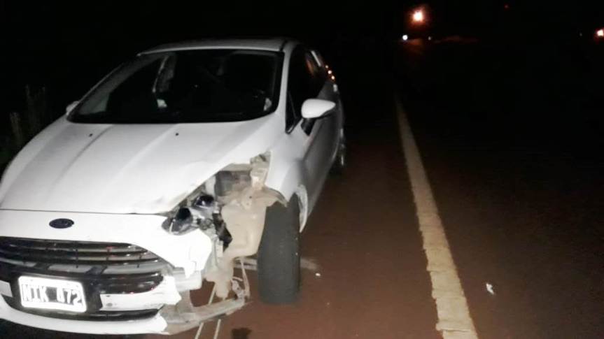 GUARANÍ. El hecho se registró esta madrugada en la ruta Nacional 14, acceso a Picada Yapeyú de la localidad de Guaraní, cuando por razones que se tratan de establecer, colisionaron: un automóvil Ford Fiesta, que era guiado por Cristian M. quien iba acompañado por Jorge S. de 22 años; Salomé S. de 24; Ramón C. de 20 y Gisel A. de 26 y una motocicleta de 110 centímetros cúbicos, conducida por Horacio C. de 24 años.