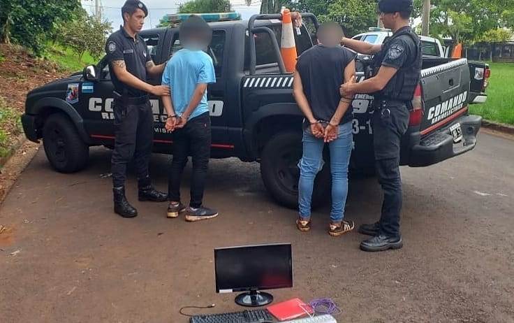 PUERTO RICO. El procedimiento se realizó esta mañana, alrededor de las 6 hs, sobre las calles Primera Junta y Culmey. En el lugar, efectivos de la comisaría 1ra, División Comando Radioeléctrico y con el apoyo de la División Investigaciones de Puerto Rico, dependientes de la Unidad Regional IV, atraparon a Gabriel LR. De 18 y a Juan S. de 19, acusados de robar elementos de una boletería de la terminal de ómnibus de la localidad.