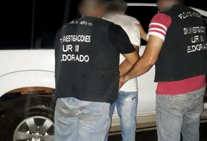 EL ALCAZAR-ELDORADO. La detención ocurrió ayer en zona del kilómetro 11 de la ruta 17 frente a una plaza del barrio Parque de Eldorado, lugar donde policías encubierto de la Dirección Homicidios de Posadas junto a Divisiones Investigaciones de Puerto Rico, Eldorado y Montecarlo arrestaron a Raul R. (47), conocido como «Dibu» quien sería el presunto autor del homicidio de Ismael Dominguez de 64.
