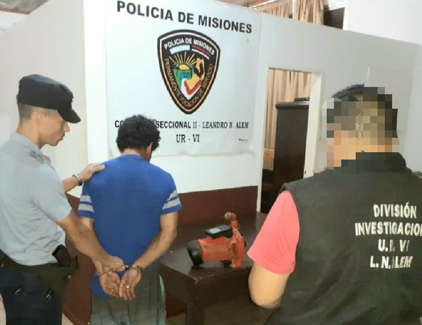 Tras la denuncia se pudo establecer que la bomba 3/4 HP estaba en poder de un tío del nombrado Rodriguiño y que había sido cambiada por un centro musical, por lo que la Policía incautó el elemento que luego fue reconocido por el damnificado.