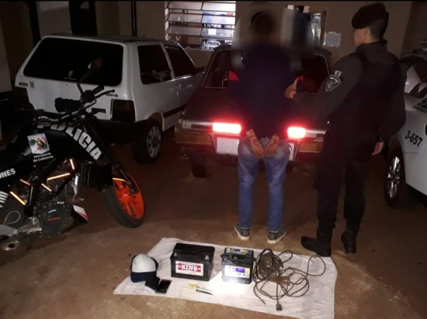 OBERÁ. Esta madrugada, efectivos de la División Agrupación Motorizada, recuperaron dos baterías de automóvil de 12 V y un rollo de alargue. Ademas detuvieron a Mariano G.(24) y en su poder secuestraron un cuchillo y un destornillador.