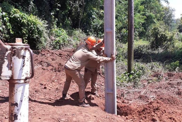 OBERÁ. Personal de Redes Rurales de la Cooperativa Eléctrica Ltda. Oberá (CELO), se encuentra realizando tareas de reemplazo de postes de madera por postes de hormigón armado (cemento) en el municipio de San Martín.