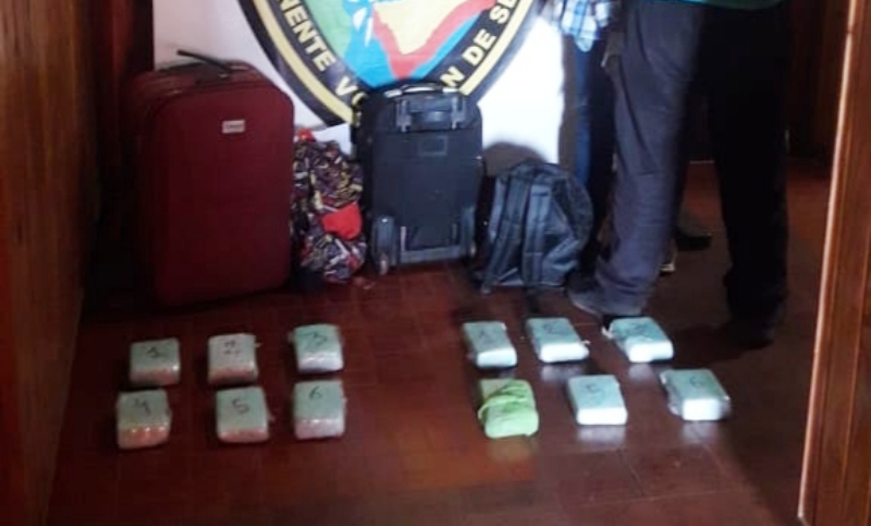 Con la presencia de personal de Toxicomanía se realizó la requisa de las valijas donde fueron secuestrados 12 panes que dieron positivo para cannabis sativa, con un peso total de 8 kilos 363 gramos.