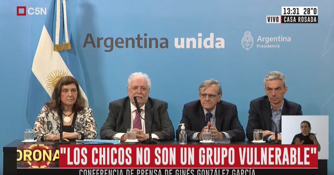 «La responsabilidad la tienen que tener padres y madres en el cumplimiento del aislamiento social en caso de sospecha. Le pedimos a la sociedad que sea consciente que cada decisión que toma nuestro gobierno lo hace a partir de las recomendaciones de las principales referencias científicas argentinas», añadió.