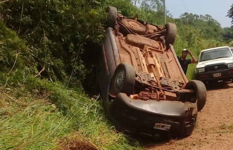 ALEM . Este viernes a las 12.20 hs. se constató un despiste en Picada Don German (Cercanías secadero de Yerba Mate «Don Germán»), donde un vehículo marca Fiat Doblo, conducido por DARIO F. (34) de Alem; según manifestara realizó una maniobra evasiva, para no colisionar con una motocicleta, perdiendo el control de su vehículo, volcando y quedando en forma invertida.