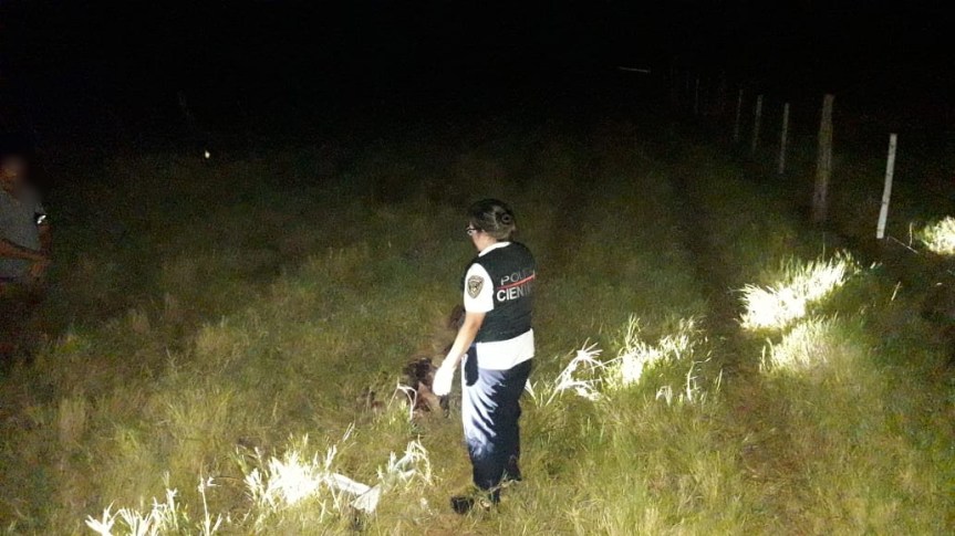 Preliminarmente, la Policía constató que el fallecido presentaba una herida de arma de fuego en la cabeza; a unos pocos metros había restos de animal faenado; un machete y otros elementos para faena.