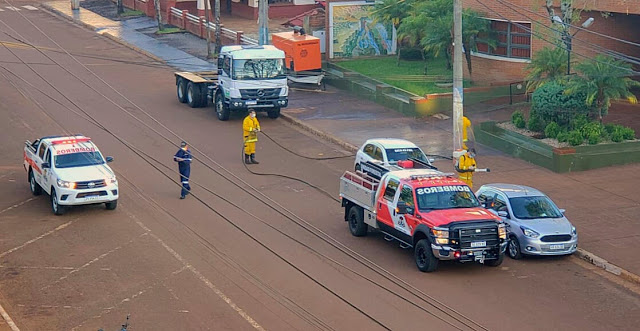 DOS DE MAYO/SAN VICENTE. Al igual que otras localidades de la provincia la Asociación de Bomberos Voluntarios y personal de la Municipalidad de San Vicente y Dos de Mayo realizaron tareas de desinfección en las veredas de bancos, YPF, Policía, Municipalidad y en las clínicas de la ciudad; lugares donde habitualmente existe gran cantidad de tránsito de personas. Un trabajo efectuado en el marco de la actual Emergencia Sanitaria contra el dengue y el coronavirus. El producto es básicamente lavandina y se aplica a las ruedas de los vehículos que accedan a los municipios.