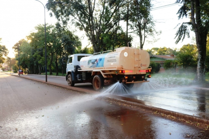 asimismo el municipio intensifica la prevención con un sistema de hidrolavado que contiene desinfectante para las veredas, calles y cunetas (cordón de calle) y garantizar así la desinfección en la ciudad.