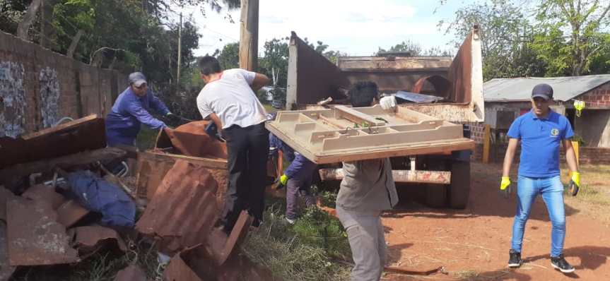OBERÁ. Trabajadores municipales continúan con la tarea de recolectar chatarras y otros elementos que pueden ser reservorios de agua y potenciales criaderos de mosquitos transmisores de enfermedades vectoriales.