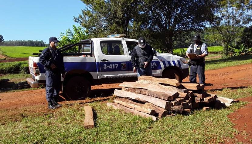 VILLA BONITA. Ayer, efectivos de la Comisaría local, junto a los de la Comisaría de Campo Ramón y de la División Comando Radioeléctrico Norte, recuperaron maderas de especies nativas, secuestraron una camioneta F-100, una motocicleta 150 c.c, 5 machetes; y además detuvieron a Cesar H. (36) y Lucas D.(24).