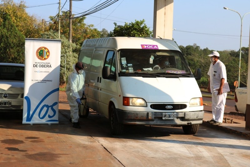 OBERÁ. La desinfección a remises y vehículos utilitarios que ingresan a la ciudad es otra de las medidas sanitarias que impulsó el Gobierno de la Ciudad de Oberá.