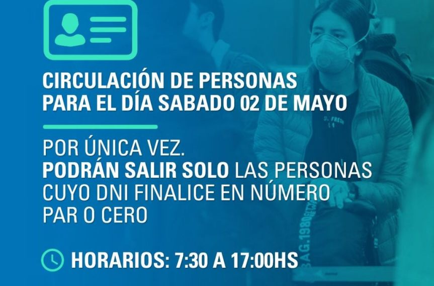 OBERÁ. Mediante la Resolución Municipal N° 484/2020 se establece que, para el sábado 2 de mayo, podrán circular únicamente personas cuyo DNI finalice en número par o cero.
