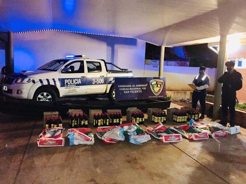 EL_SOBERBIO. El procedimiento se realizó ayer martes a las 19.30 hs, en circunstancia que se llevaban adelante recorridas por la zona ribereña del Río Uruguay, más precisamente a la altura de Barrio Maracaná de El Soberbio. Allí los efectivos incautaron botellas de caña de origen extranjero, ingresadas al país sin aval aduanero.