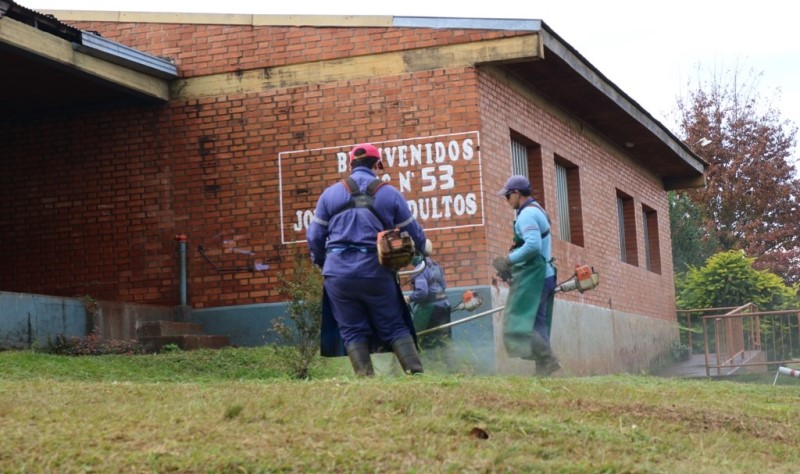 Las tareas son coordinadas con la Secretaria Escolar de Oberá, la dirección de Obras y Servicios Públicos, y el departamento de Educación municipal. Los trabajos son en doble turno y se extenderán hasta el lunes 22.