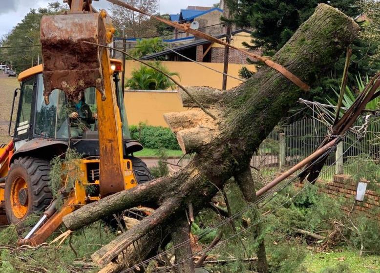 La tormenta que atravesó gran parte de Oberá, afectó diferentes puntos de la ciudad, provocando daños en la vía pública, dependencias municipales, caída de ramas y árboles en las calles, veredas, plazas y plazoletas.