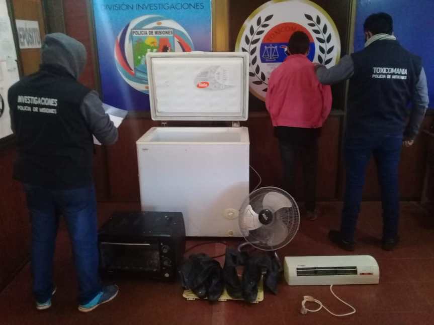 La investigación del caso se inició a partir de la denuncia de Juan Carlos T. de 54 años, quien manifestó la sustracción de freezer, un ventilador, un horno eléctrico, un caloventor y un par de botas Por ello, efectivos de las Divisiones Investigaciones y Toxicomanía de la Unidad Regional VIII, iniciaron una intensa pesquisa y tareas de rastrillajes donde hallaron la mayoría de los objetos ocultos en una zona de monte.