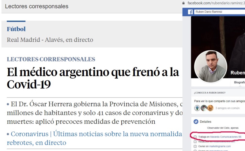 MISIONES. «El Dr. Óscar Herrera gobierna la Provincia de Misiones, con 1,2 millones de habitantes y solo 41 casos de coronavirus y dos muertes: aplicó precoces medidas de prevención», así es la bajada que da inicio a una nota publicada en el diario La Vanguardia de España, pero ¿dónde tiene origen este artículo?. Pues bien la operación de prensa fue escrita por Rubén Darío Ramírez, un funcionario renovador que trabaja en Marandú, empresa del estado misionero y enviada como «espacio de lectores» al diario con sede en Barcelona.