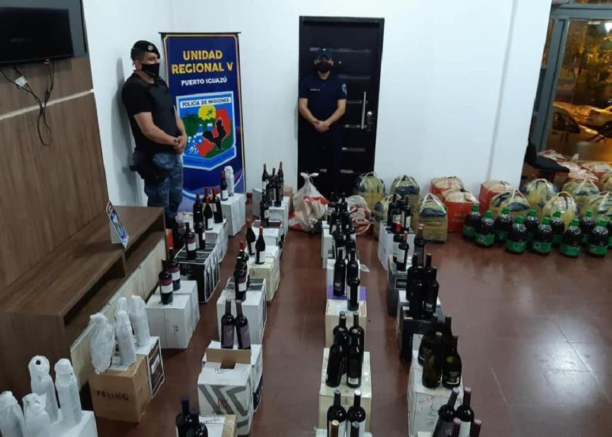 IGUAZÚ. La detención se produjo en las 600 hectáreas, luego de dar aviso a las fuerzas, fueron sorprendidos intentando ingresar mercaderías sin aval aduanero a Brasil. Secuestraron 290 botellas de vino de distintas marcas, 240 litros de aceite de oliva, y 90 kilos de carne (picanha)