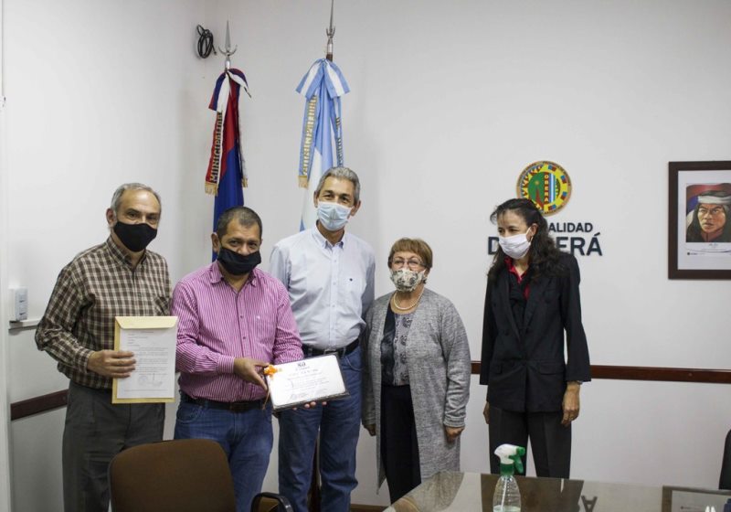 OBERÁ. En la mañana de este lunes, el Intendente Carlos Fernández, entregó una placa de reconocimiento por el 80 Aniversario de la creación de la Escuela N°304, Barbará Ponce de Lindström.