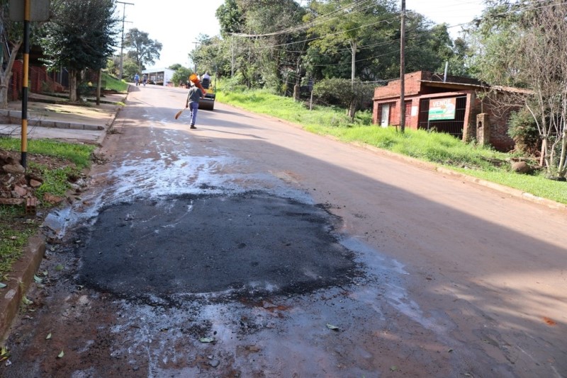 OBERÁ. Personal de la Dirección de Servicios y Obras Públicas realizan mantenimientos de las calles en el casco urbano de la ciudad.