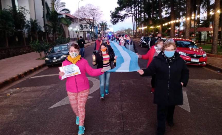 OBERÁ. Docentes autoconvocados y de los gremios UTEM y Tribuna Docente, marcharon en la tarde de este miércoles por el centro obereño para reclamar ser atendidos por el gobierno provincial. Varias decenas de maestros caminaron portando una bandera nacional, tras una concentración en la plazoleta Güemes. Exigen a la provincia un básico salarial de 12.800 pesos (hoy en 7.500 pesos) y que la obra social del IPS funcione como corresponde, pues ya que cobran poco, la cobertura es pésima y deben abonar extras por cada consulta y laboratorio.