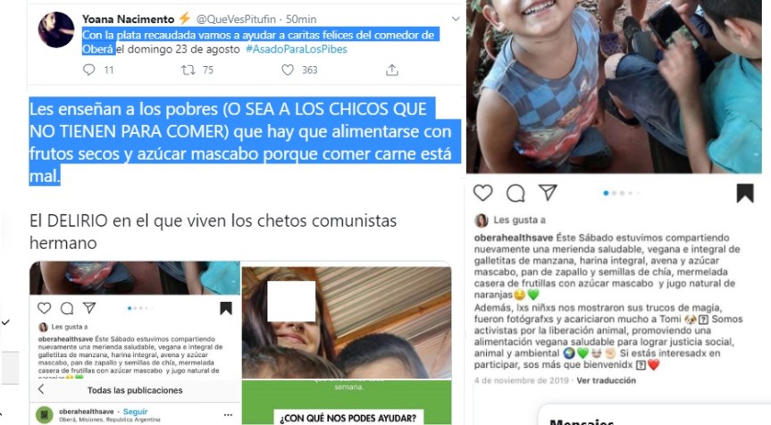 La discusión en las redes despertó comentarios acusatorios de «qué lástima que solo les nace ayudar a los chicos porque le quieren hacer la contra a los veganos, parece que les importa más la competencia que ayudar a los chicos pobres que no tienen para comer».
