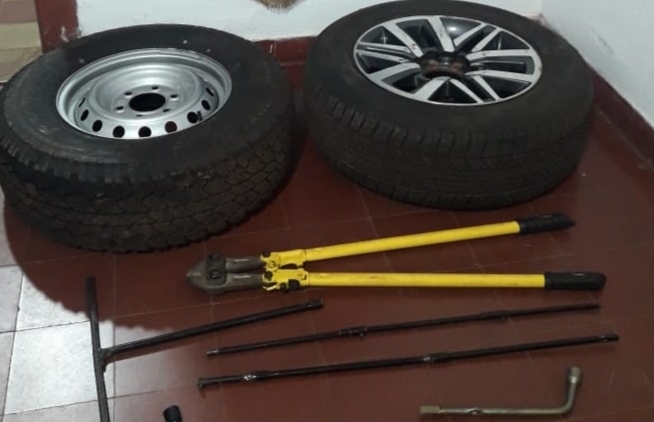Fue en ese mismo lugar, que se secuestró las dos ruedas de auxilio de alta gama y varias herramientas, que presuntamente fueron utilizadas para llevar a cabo los ilícitos.