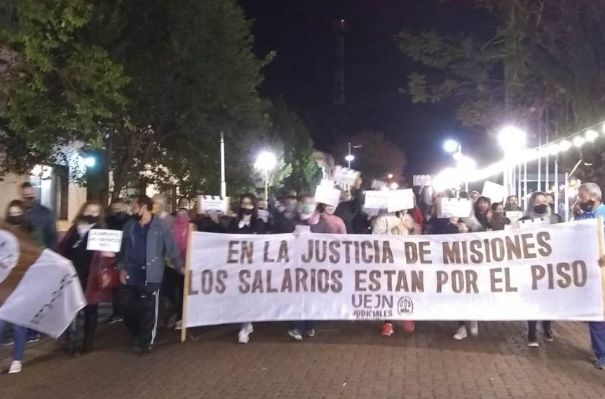 Foto de la movilización hecha en Oberá por parte de empleados judiciales y docentes.