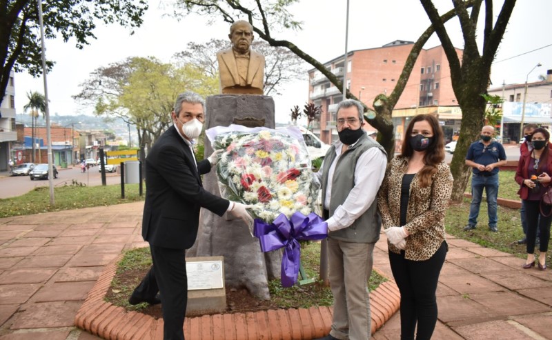 Asimismo, se depositó al pie del busto de Sarmiento, una ofrenda floral. Esta acción se realizó en conjunto entre el alcalde municipal, el Presidente del Concejo Deliberante, Santiago Marrodán y la Defensora del Pueblo, Patricia Nittman.