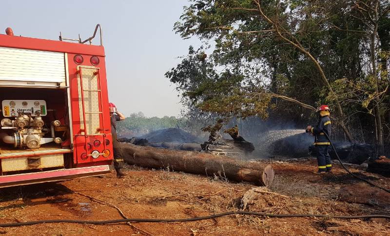 En Villa industrial, localidad de Guaraní, el fuego originado en una zona de pastizales, consumió además varios metros de madera, propiedad de un hombre de 58 años. Las llamas fueron sofocadas por integrantes de la mencionada división.